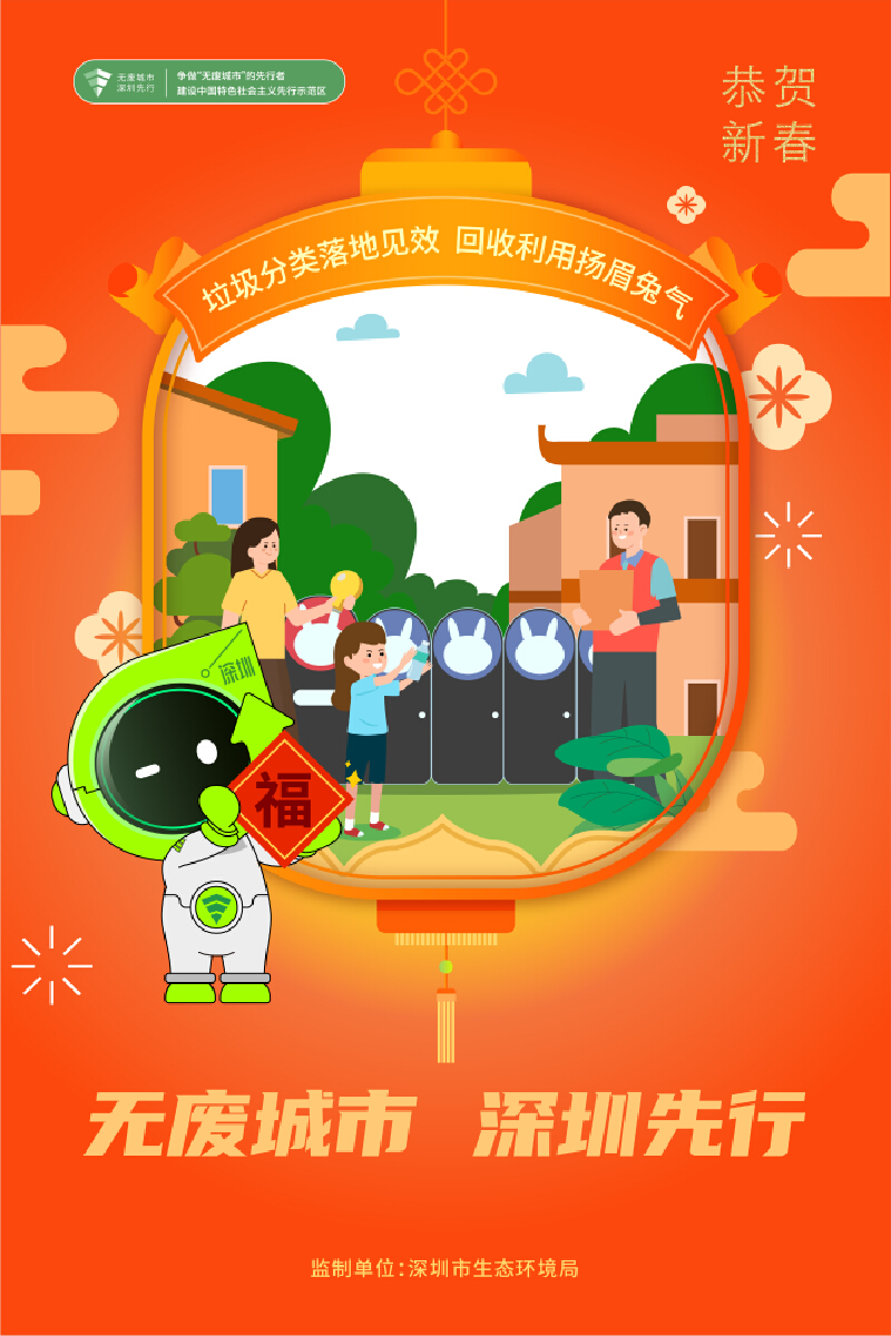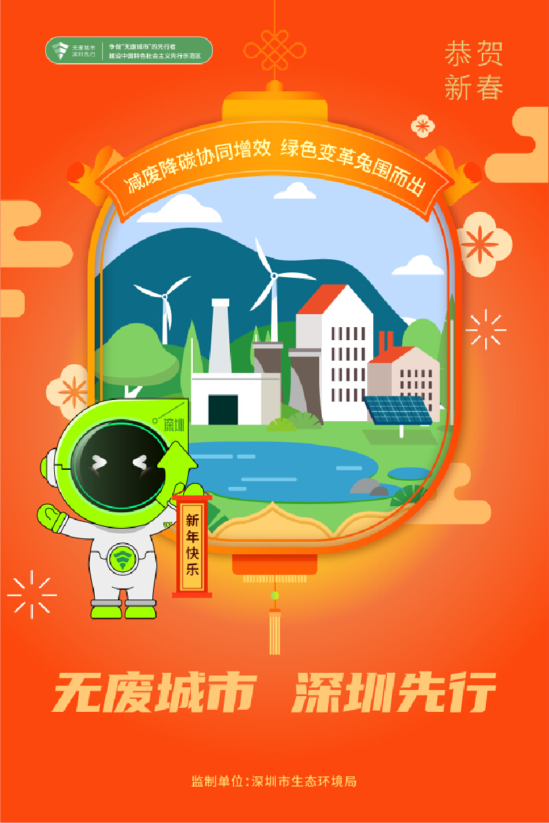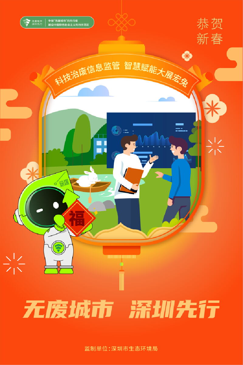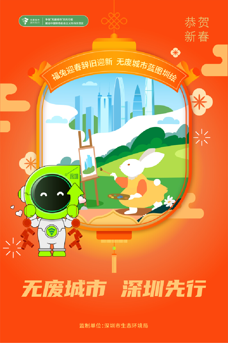 无废城市,文化先行。1月18日,记者从深圳市生态环境局获悉,临近春节,为了更好地推进高端“无废文化”建设,呈现全市统筹城市发展与固体废物管理,推动绿色发展和绿色生活,实现减污降碳协同增效,奋力打造超大型城市固废治理“深圳样板”,深圳市生态环境局以“兔年迎新春”为主题,发布“无废城市”年味主题海报,为市民打造专属的“年味壁纸”。