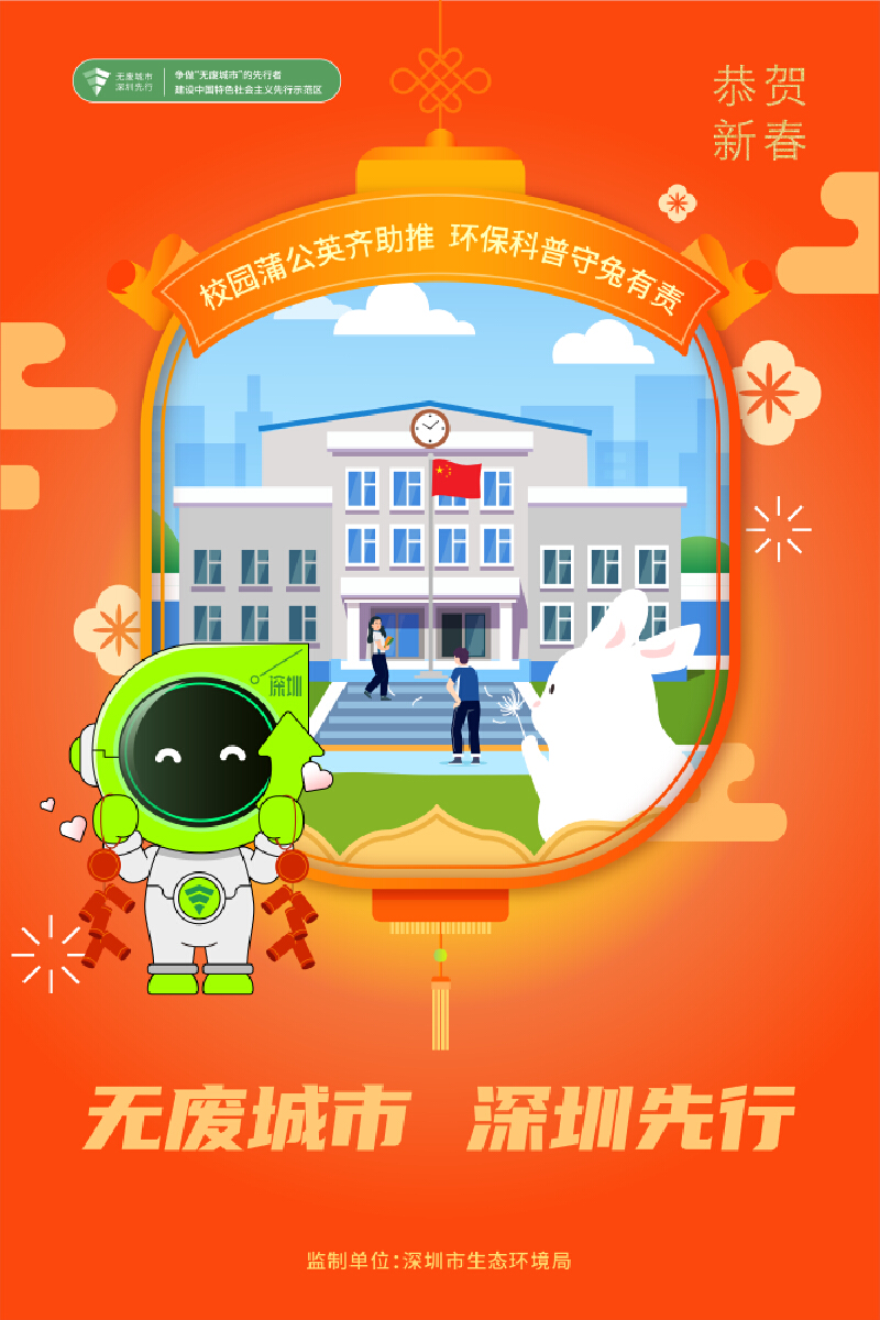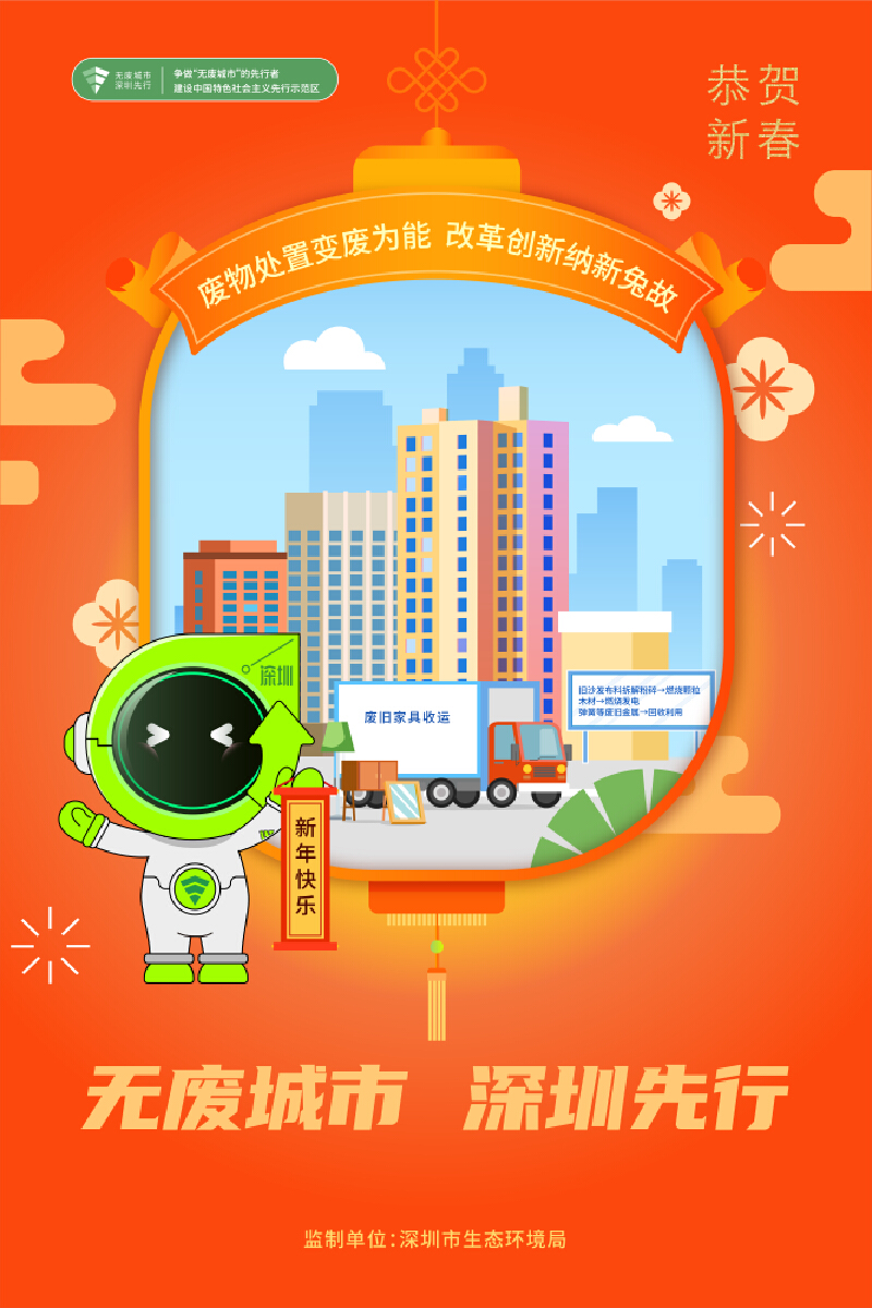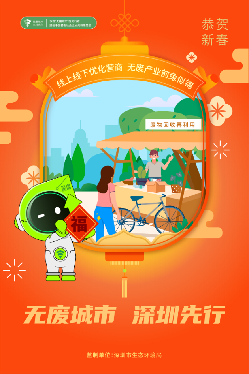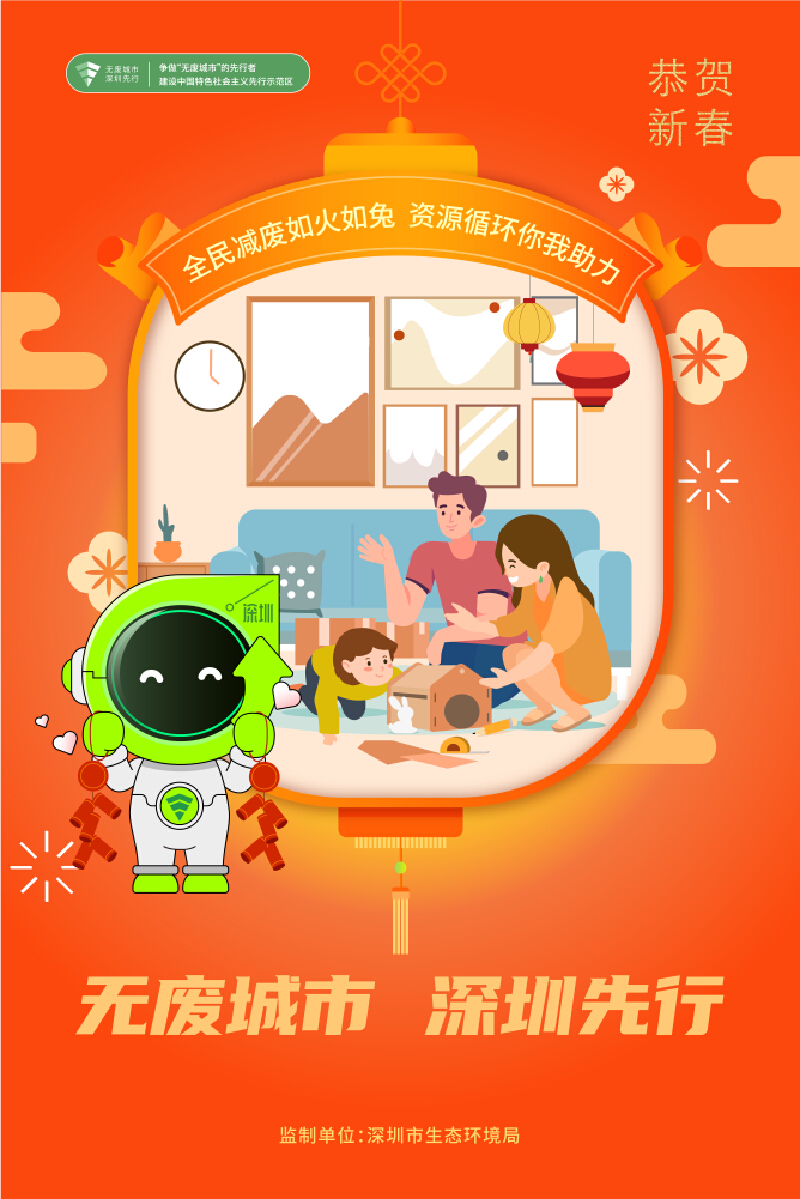 无废城市,文化先行。1月18日,记者从深圳市生态环境局获悉,临近春节,为了更好地推进高端“无废文化”建设,呈现全市统筹城市发展与固体废物管理,推动绿色发展和绿色生活,实现减污降碳协同增效,奋力打造超大型城市固废治理“深圳样板”,深圳市生态环境局以“兔年迎新春”为主题,发布“无废城市”年味主题海报,为市民打造专属的“年味壁纸”。