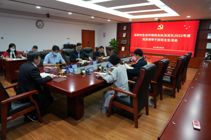 2023年2月9日下午,深圳市生态环境综合执法支队在314会议室召开2022年度党员领导干部民主生活会,市生态环境局党组成员、支队党总支书记许化同志主持会议,支队领导班子成员参加会议。
