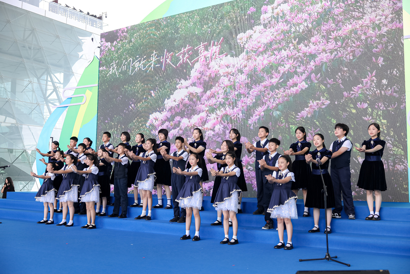 活动在福田区红岭教育集团深康学校风铃合唱团悠扬的歌声《我们爱着的这个星球》中拉开序幕,瞬间将现场观众带入了绿色世界。令人眼前一亮的是,AI数字主持人小艾与真人主持人携手登台,通过大屏幕展示了深圳在生态智慧领域的卓越成就。